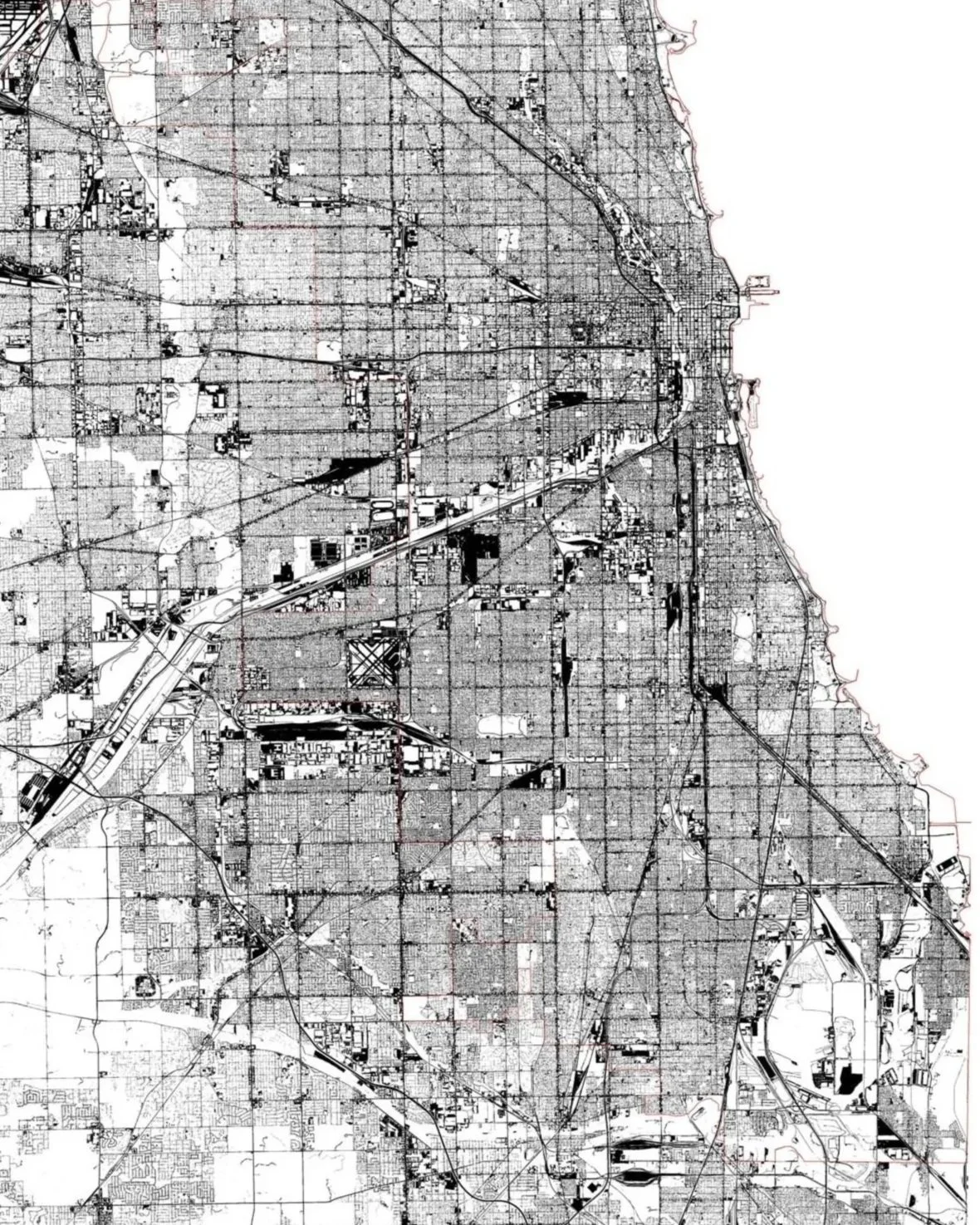 Sample of pavement map of Chicago and Cook County. 35% of the land cover across the City of Chicago pavement.